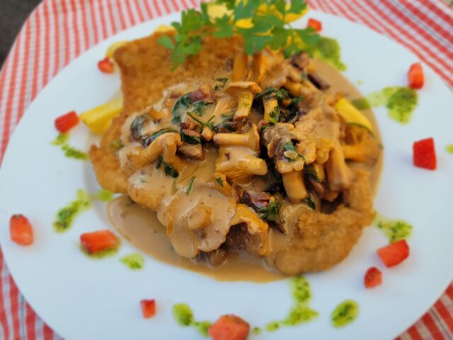 Selbstverständlich bieten wir immer eine Auswahl unserer leckeren und über die Stadtgrenze hinaus bekannten Schnitzelgerichte an.